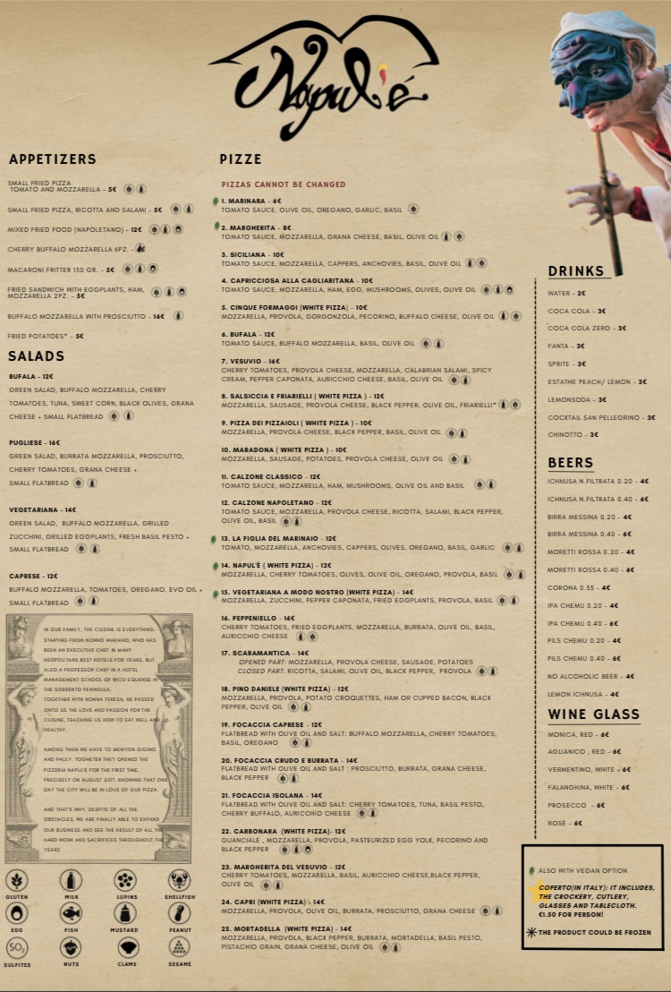 Welcome to Napul'e - Pizzeria Napoletana, a gem nestled in the heart of Cagliari, Italy. This pizzeria celebrates authentic Neapolitan cuisine, offering a vibrant tapestry of flavors that transports you straight to Naples. The menu features a stunning array of pizzas, from classic margherita to innovative vegan options, ensuring there's something for everyone.